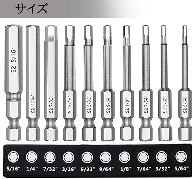 【6角レンチ ビットは強磁気】タップバンドは強磁気で、取り付け中にネジを吸いやすくすることができる。鏡面仕上げ、明るい防錆コーティング。S2鋼を採用して、表面はクロムメッキ、防錆、高精度、耐久性があります。