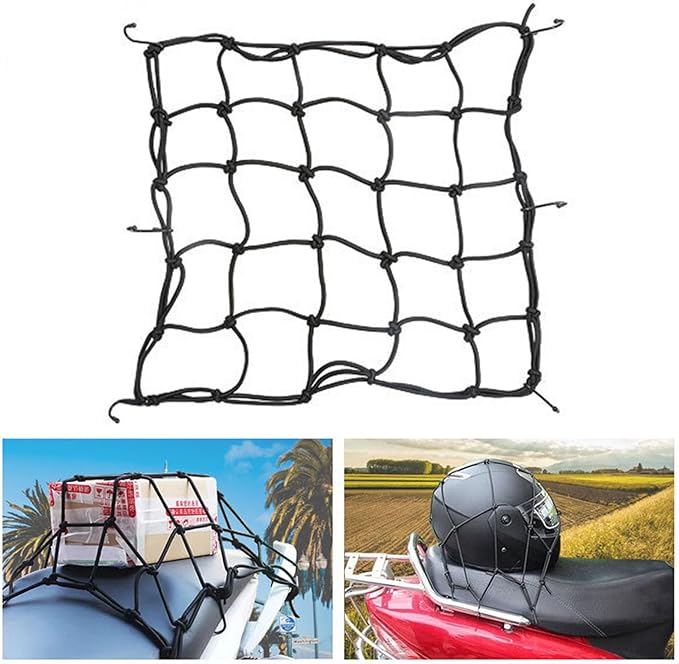 【適用シーン】● バイクツーリング:長距離移動時の荷物固定。● 自転車の荷物運搬:前カゴ・後部キャリアの荷崩れ防止。● アウトドア&キャンプ:テントやキャンプギアの固定に。● 車のトランク整理:ラゲッジネットとして活用。