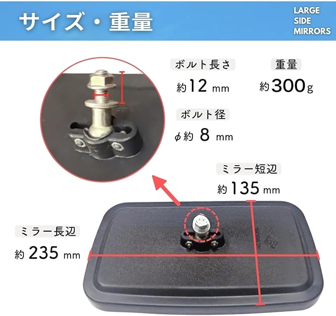 【サイズ】約235mm 約135mm、ボルト径:約φ8mm、ボルト長さ:約12mm、【重量】約300g/個、【バリエーション】1個(単品)、左右2個セット、左右2個セット 2(合計4個)の3種類よりお選びいただけます。