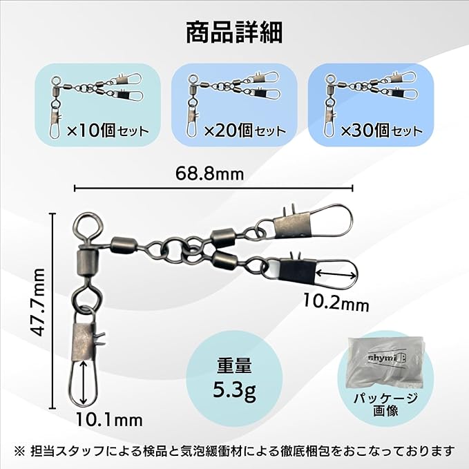 shymie タコエギ スナップ サルカン タコ釣り 強度 40kg リング ルアー ツリ スイベル スクリュー 海釣り 仕掛け 道具 10 20 30 個
