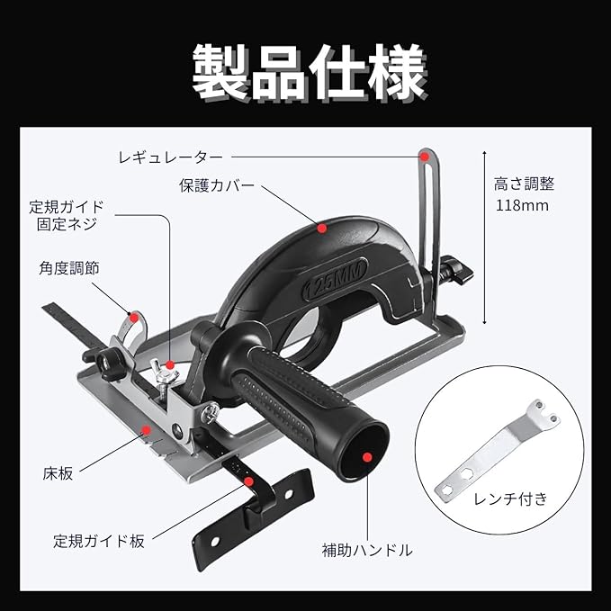 adzu アングルグラインダースタンド 丸ノコ 切断 ブラケット ディスク 固定 ベース 調整可能 DIY アングル スタンド グラインダー 防塵 アタッチメント (タイプA)