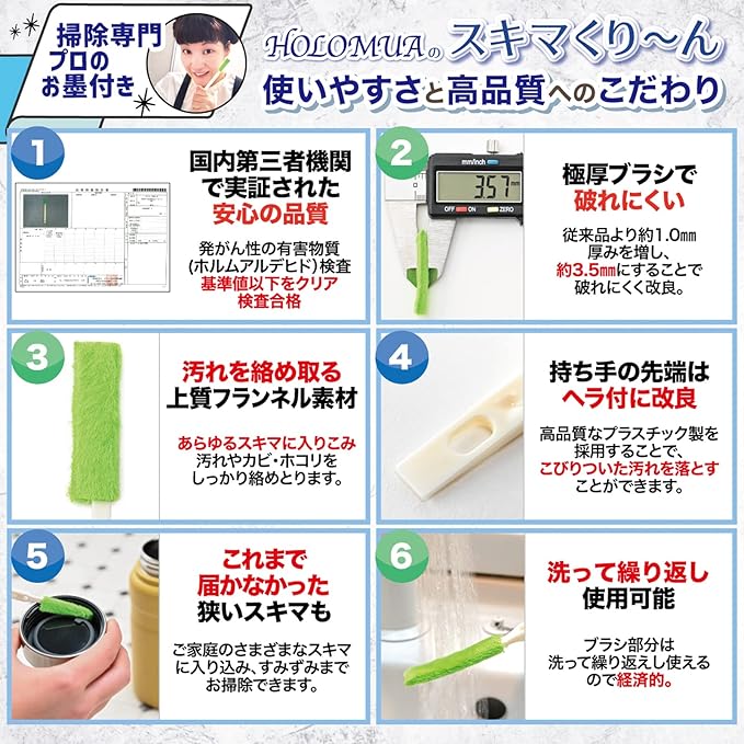 【安心の180日間長期保証】「インターネットでの買い物は、実際に商品を手に取って触って選べないから不安…。」 そんなお客様にも安心してお選び頂けるよう、HOLOMUAでは独自の180日間長期保証対応を行っています。万が一、当社の 掃除 ブラシ ( 隙間ブラシ )にご満足いただけない場合や、商品に不具合があった場合はお気軽にご連絡ください。すぐに交換・返金等の対応を取らせて頂きます。