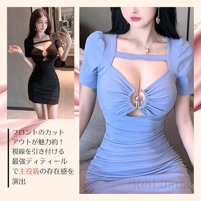 【エレガンスとセクシーの融合】 このワンピースは、エレガントなデザインとセクシーなシルエットを兼ね備えています。 フロントのカットアウトディテールが魅力的なアクセントとなり、どんな場面でも視線を引きつけます。