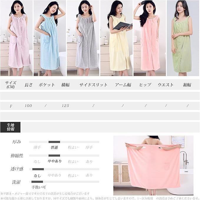 [Vmiutyer LLOP] 着るタオル レディース 大人用 タオル地 ポケット付き 吸水 速乾 湯浴み着 お風呂上り プール 温泉 ジム 旅行 ふわふわ 着替えタオル 部屋着 春 夏
