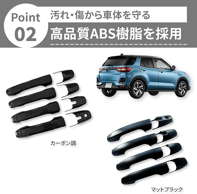 適合車種 : ライズ/ロッキー用(2020-2023)ドアハンドルカバー。カーボン調/マットブラック