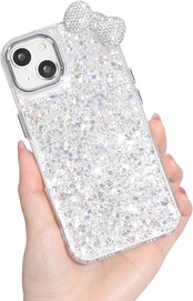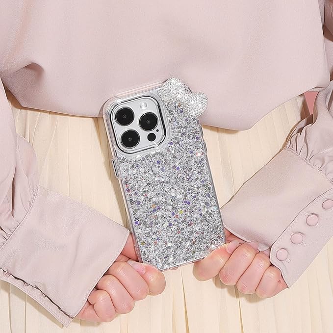 【ぎっしりラメ 立体リボンのキラキラリボンケース】 ケース全体に大小さまざまなストーンとラメを惜しみなく敷き詰めた、まばゆい輝きが魅力のデザイン。光の当たり方や角度によってキラキラと反射し、まるでジュエリーのような存在感を放ちます。カメラ周りには大きめの立体ビジューリボンをあしらい、正面・背面・斜めなどどこから見ても映える可愛さ。ラグジュアリーでありながらも可愛さをしっかり兼ね備えており、毎日のコーディネートにも気分が上がるスマホケースです✨ 【上品でしっかりとしたリボン仕立て】 リボン部分には小粒のラインストーンを丁寧に一粒ずつ配置し、きらめきを逃さない仕上がりに。しっかりと装飾を施しているため、見る角度を選ばず常に美しい印象をキープします。接合部の処理やカットも丁寧で、チープに見えることが一切なく、大人っぽく高見えするのがポイント。可愛く仕上げられたリボンが、全体のクオリティをぐっと引き上げてくれます。 【壊れにくいリボン構造で安心】 かわいいだけじゃない、実用性も大切に。リボンの土台部分には耐久性の高い強化素材を使用し、しっかりと固定する設計にすることで、落下時や引っかかりにも強くなっています。装飾系ケースにありがちな「リボンがすぐ取れた…」というお悩みにも応えられる仕様で、長く愛用できる安心感が魅力です。日常使いはもちろん、イベントや旅行などでも安心して持ち歩ける耐久性を実現しました。 【手にフィットする快適な使い心地】 ケース本体にはしなやかで衝撃吸収性に優れたTPU素材を採用し、しっかりとiPhoneを保護。軽量設計で持ちやすく、長時間使っていても疲れにくい仕様です。さらに、ラメの凹凸が滑り止めとしても機能し、うっかり落とす心配も軽減。可愛いだけでなく、実際に使ったときの「ちょうどいいフィット感」を重視しており、毎日の使用でもストレスなくお使いいただけます。 【あんしんサポートで長く使える】 日本人スタッフによるカスタマーサポートが24時間365日体制で対応しているので、もしケースに破損や初期不良などを発見した場合でも、すぐにご相談いただけます。交換や修理も含め、アフターケアに力を入れているため、長く安心して使っていただけるのが嬉しいポイントです。デザイン性や機能性だけでなく、購入後のフォローまで充実しているからこそ、初めてのクリアケース選びでも難なくお求めいただけるでしょう。大切なスマホを守りながら、自分らしいおしゃれを楽しむための“相棒”として、ぜひこのクリアケースをお試しください。