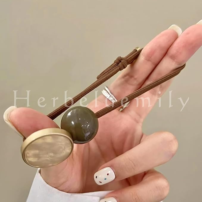 [Herbeluemily] ヘアゴム チャーム付き 髪ゴム お洒落 フェミニン 上品 へアアクセサリー 飾りつき 大人 ベージュ HM-0095-R04-BE