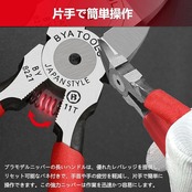 【特徴】グリップ部分は手に優しいエラストマーを採用し、握りやすく水に濡れても滑りにくい高級ハンドル仕様です。ミニニッパーは真ん中にバネが付いています。自動的跳ね返るので、長時間使っても疲れません。片手で操作でもとても楽です。