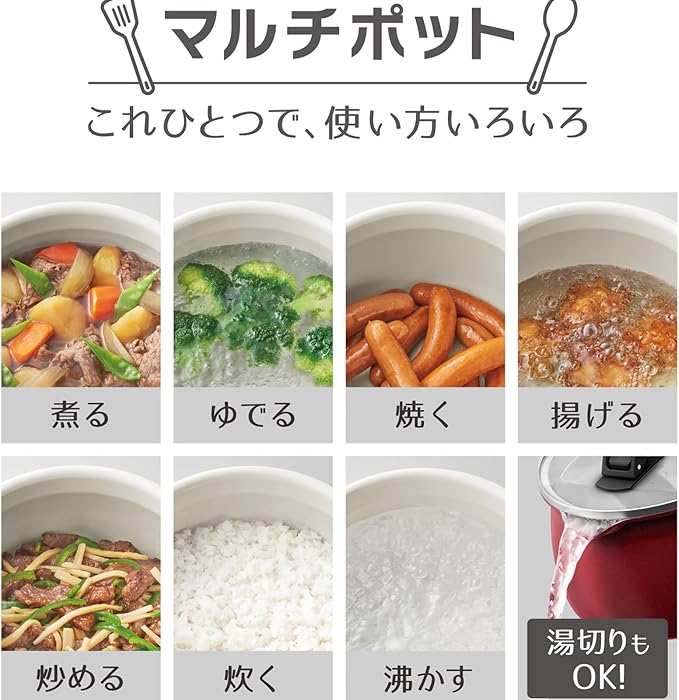サーモス セラプロテクトシリーズ マルチポットKNC IH・ガス火対応 ディープレッド 1台7役 煮る 茹でる 焼く 揚げる 炒める 炊く 沸かす KNC-018S DR