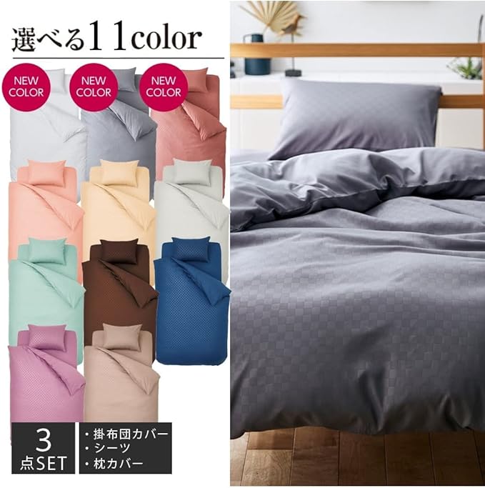 [ニッセン] 寝具カバーセット 型押しブロック柄カバーセット ベッド用シングル3点セット ダークグレー