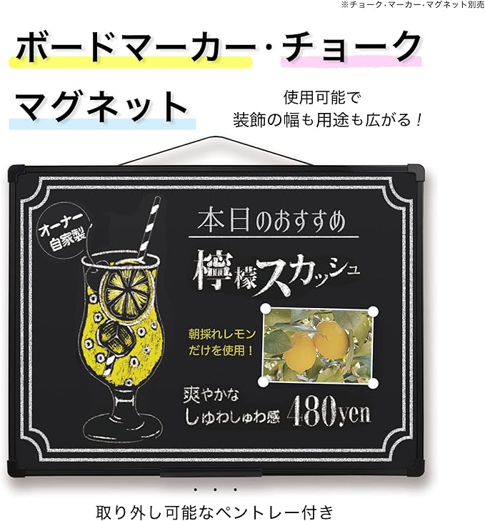 アスミックス(Asmix) アスカ プラ枠ブラックボード L BB039 黒板 チョーク マーカー マグネット トレー付き