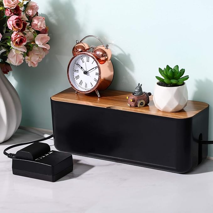 【優れた整理力】ケーブル配線ボックスはごちゃごちゃしたケーブルをすっきり収納でき、デスク周りをすっきり保ちます。内部に超大のスペースで、上蓋を開けられて、手軽に電源タップとケーブルなど整理できます。