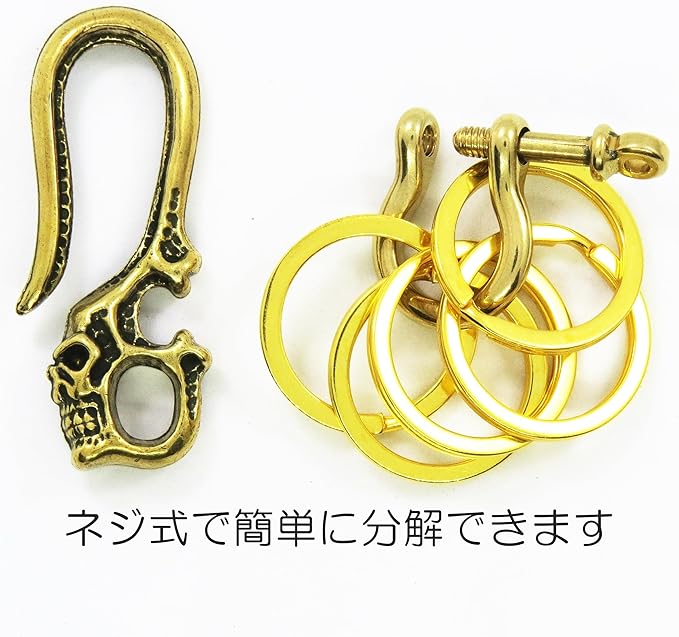 [mind items] 骸骨 キーホルダー キーフック 馬蹄 カラビナ ホースシュー キーチェーン ゴールド 真鍮 BRASS ブラス 釣り針フック ウォレット バイカー ウォレットチェーン