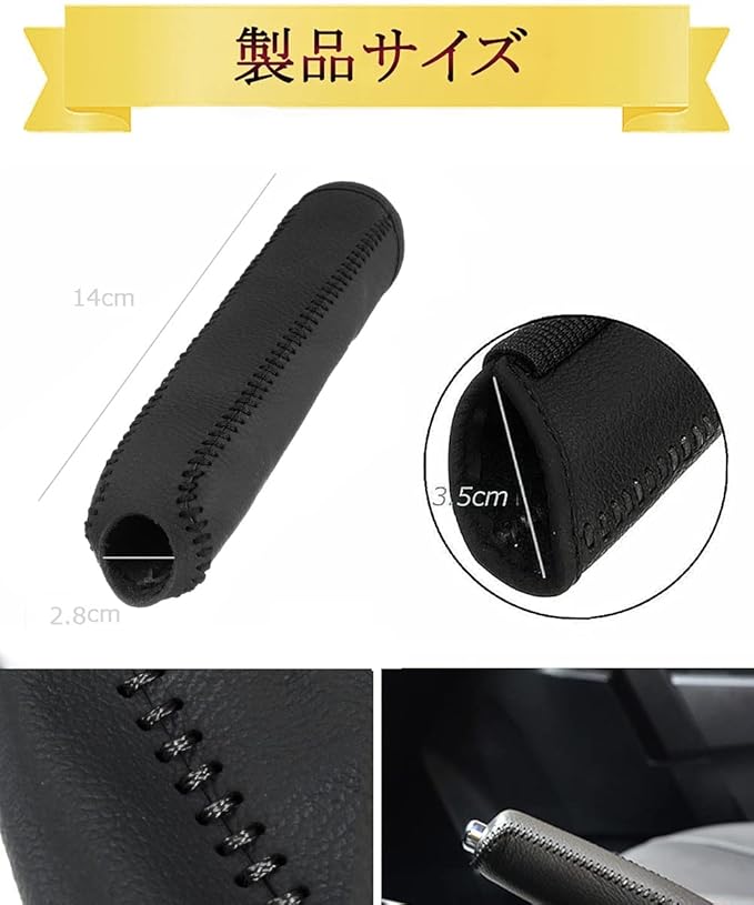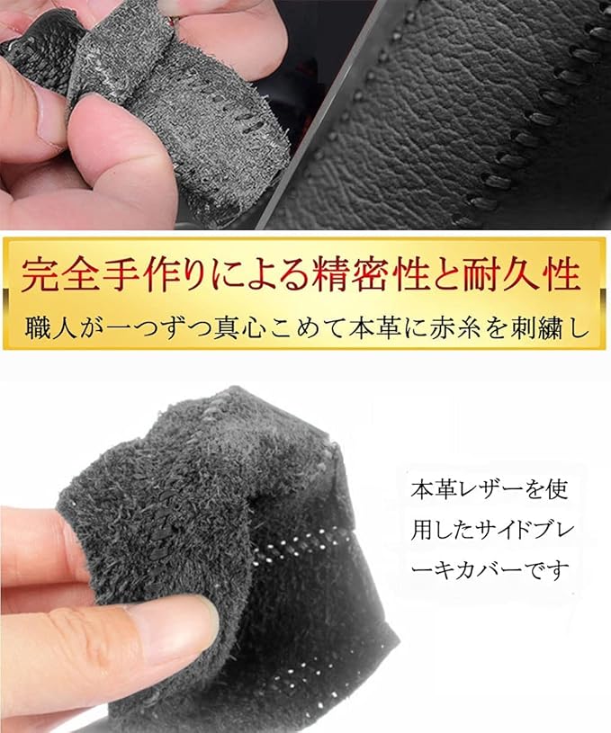 限定商品 本革 サイドブレーキ カバー 高級 レザーカバー レザー 保護 汚れ防止 取り付け簡単 汎用 ブレーキカバー 保護 (黒ステッチ)