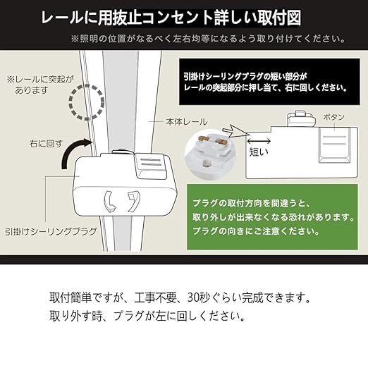 ライティングバー用抜け止めコンセント 引掛シーリングプラグ ダクトレール用 取付簡単(15A 125V 50/60Hz専用まで) 引掛シーリングボディ ライティングレール用 PSE認証(白い2個入り)