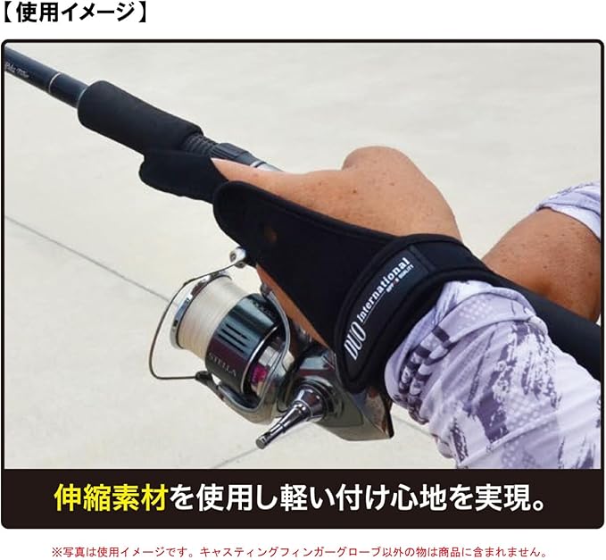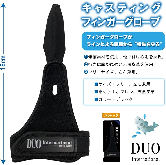 DUO(デュオ) キャスティングフィンガーグローブ!!フィンガーグローブがラインによる摩擦から“指先を守る”①伸縮素材を使用し軽い付け心地を実現。②指先は摩擦に強い天然皮革を使用。③フリーサイズ、左右兼用。