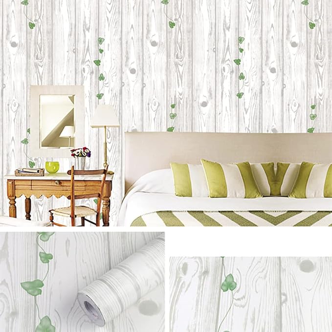 【お部屋をDIYで気分転換】お部屋やインテリアを簡単リフォームすることができる緑葉の木目調壁紙です!シールタイプの壁紙なので、切って、剥がして貼るの3STEPだけ。気軽に気分をガラッと転換であっという間におしゃれな部屋へ大変身!