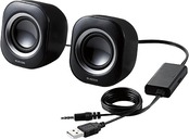 ■実効最大出力4.0Wの2.0chステレオスピーカです。パソコンなどのUSB端子からの給電で、ステレオサウンドを手軽にお楽しみいただけます。