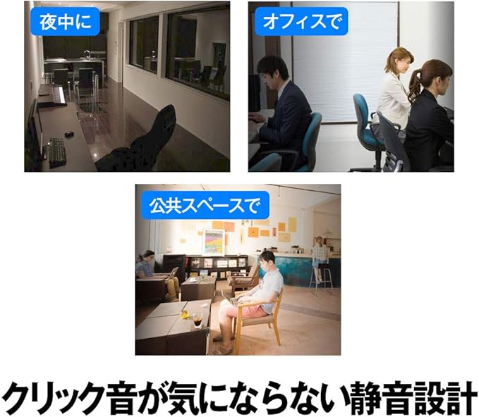 クリック音が静かな場所でも気にならない静音設計