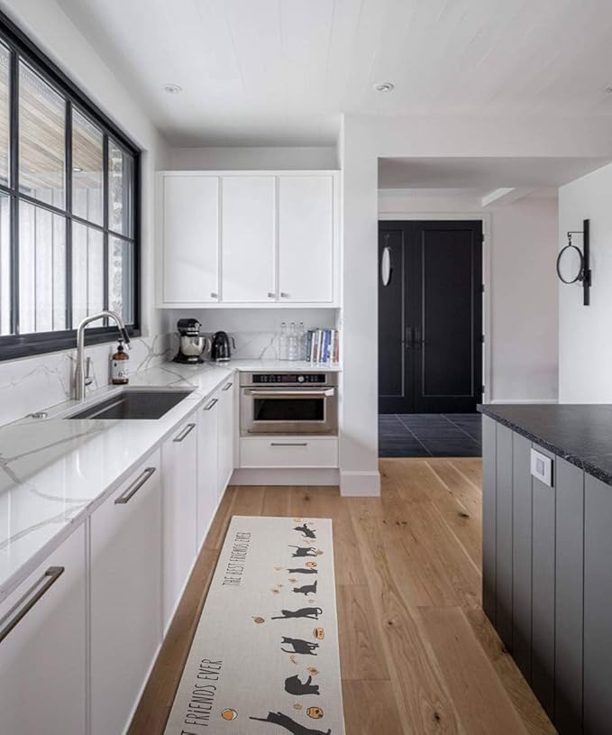 Ashmore キッチンマット 拭ける台所マ ット ずれない PVCロング床マット 撥水 おしゃれ 滑り止め 抗菌 防炎 厚さ10mm お手入れ簡単 約60cm*240cm 猫