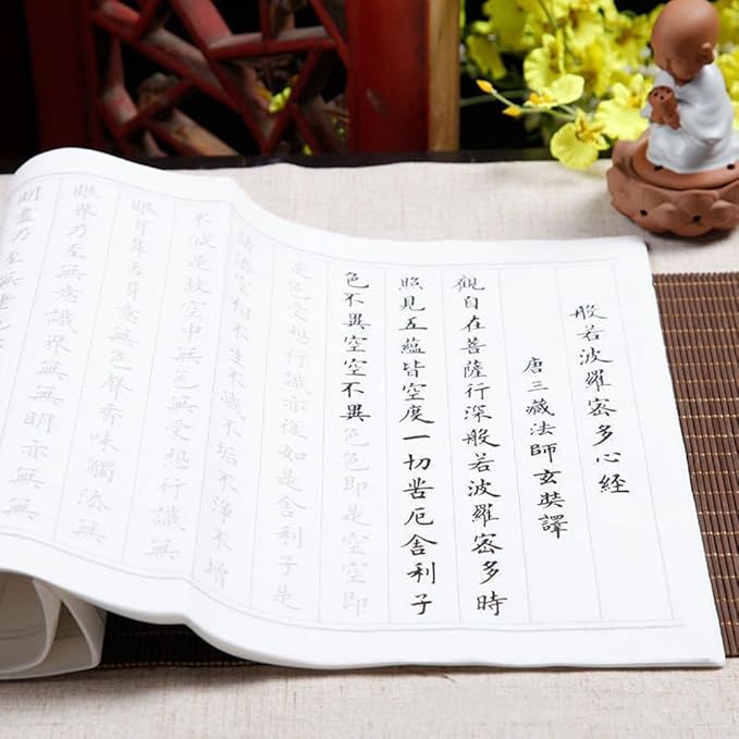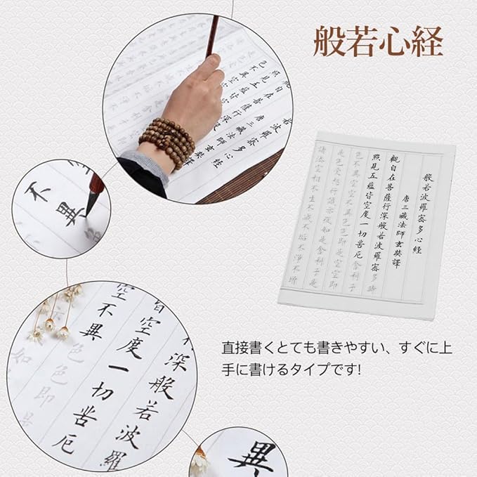 【大きい文字】この写経用紙は書道の練習としても使えるし、仏経を写し取る過程でも祈りであり、仏法を学びながら、心身を鍛えることができます。