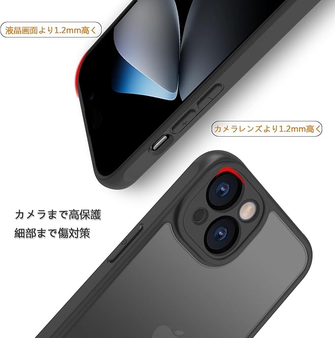 iPhone 15 ケース 耐衝撃 半透明 軽量 薄型 人気 PC 傷防止 滑り止め 指紋防止 米軍MIL規格 ワイヤレス充電対応 スマホカバー EUMADOVE (ブラック, iPhone 15)