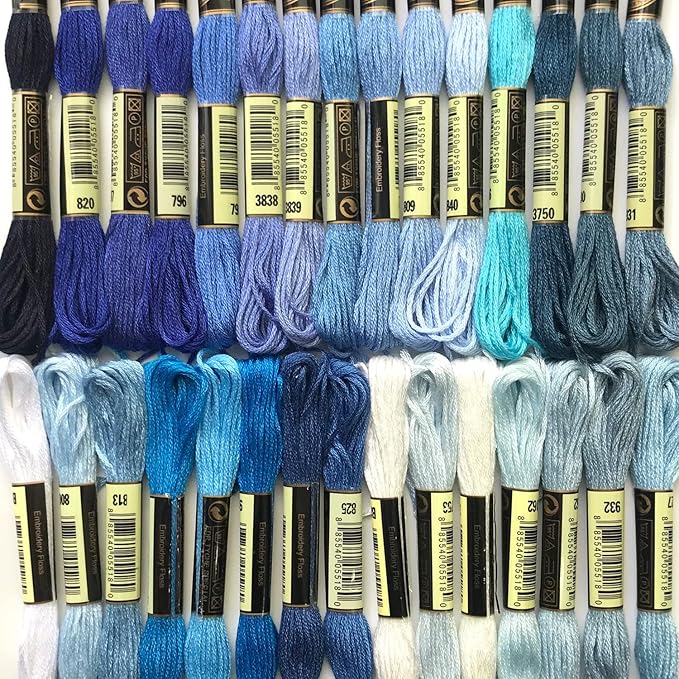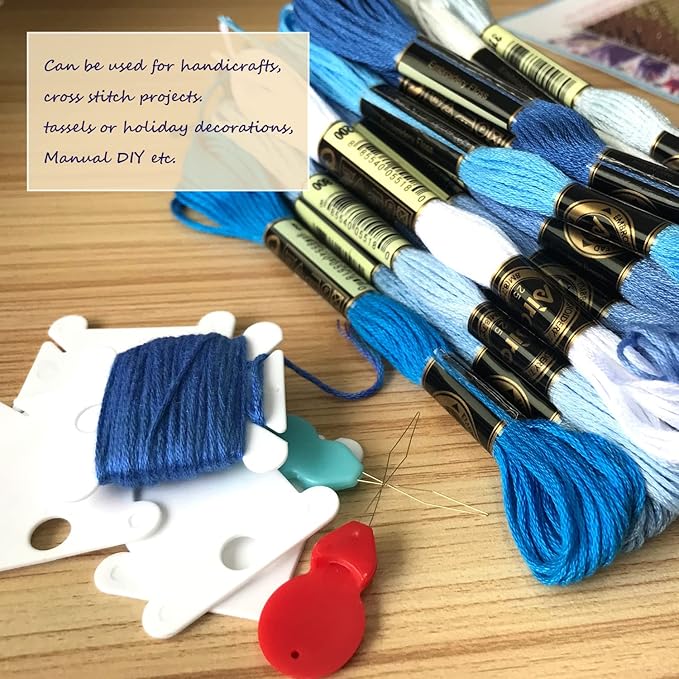 刺繍糸 セット 刺しゅう糸 ミサンガ 初心者 クロスステッチ 手芸用 カラフル 縫い糸 30色 (ブルー)