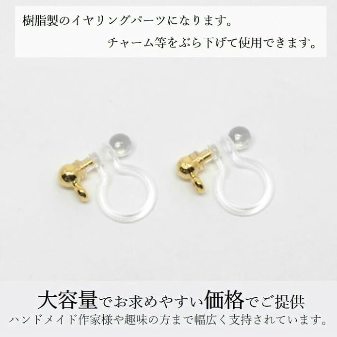 イヤリングパーツ ノンホールピアス 樹脂 パーツ ゴールド 10個 十字 カン付 イヤリング アクセサリーパーツ ハンドメイドパーツ ハンドメイドに欠かせない基礎パーツです。 オリジナルのイヤリング作成に アレルギーの方にも安心な樹脂製のノンホールピアスです。丸カン付ですのでお好きなパーツをぶら下げることができます。ハンドメイド作品の基本パーツとしてご使用ください。 サイズ 縦11mm 横10mm カラー クリア 素材 樹脂