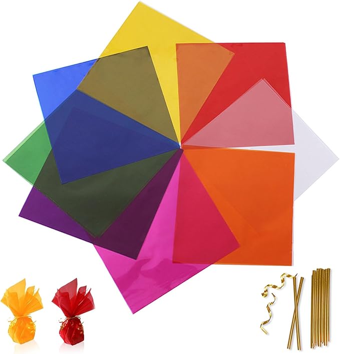 ▶️【使いやすい】このセロハンはキャンディーのギフト包装にもぴったりです。リボンや紐、ガムテープを使ってオリジナルのパッケージを作ります。