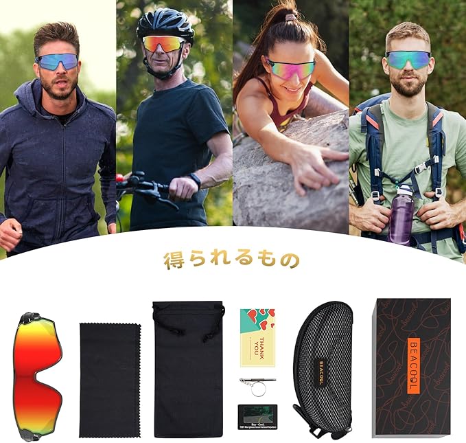 EXQUISITEパッケージ: ハードで洗練された保護カバー、清潔な布と袋、サングラスドライバーをオプションするBEACOOLサングラスとスポーツやアウトドア愛好家への完璧なオプションです。フレームとレンズは壊れにくく、リスクなく購入できます。何か問題が発生した場合は、迷わずBEACOOLのベンダーに連絡して、問題を解決して、満足するまで解決してください。BEACOOLはすべての製品にアフターサービスを提供している