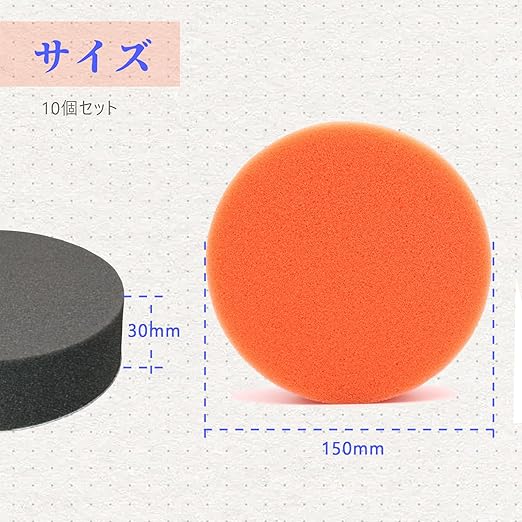 まちの波 スポンジバフ 愛車を傷つけない 150mm 10個セット 車磨き用 超微粒子用 耐久性 ワックスがけ 洗車 極細柔らかい 洗車セット (ブラック 5個 +オレンジ 5個)