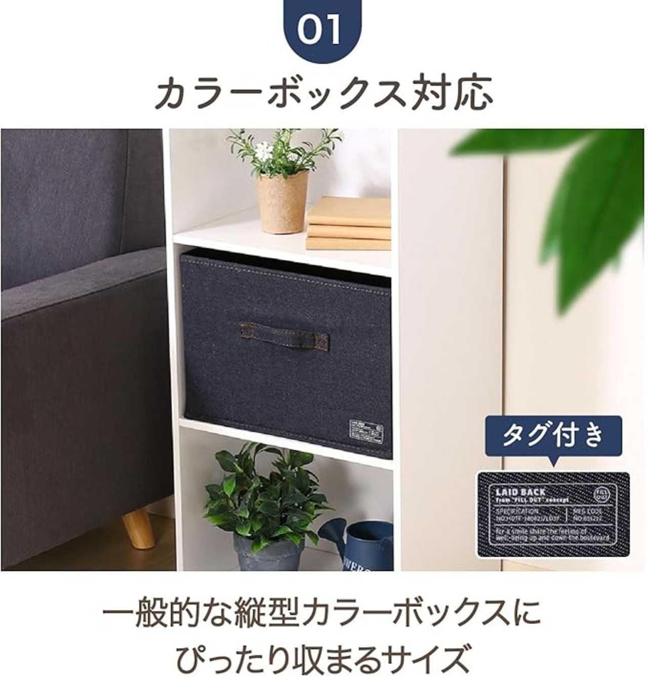 カラーボックスにも収まるサイズで、使わないときは折りたたんで収納ができます。