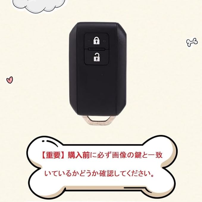 【適応車種】(2ボタン ) 適合スズキ新型ソリオ SOLIO / ソリオ バンディット BANDIT SOLIO(2020年11月〜)・新型スペーシア ・新型スペーシアカスタム・フレアワゴン FLAIR WAGON (2018年2月〜)・新型 スイフト ・ 新型 ワゴンR MH35S / MH55S ・ 新型 ワゴンRスティングレー MH35S / MH55S ・ クロスビー(XBEE)MN71S・ 新型 ジムニー JB64W ・ 新型 ジムニーシエラ JB74W ; 新型 スイフト XG,RS, SPORTS ; 新型ハスラー;新型ソリオ(MA27S); スベーシア; 新型ワゴンRMH95S ; 新型スイフトRS ハイブリッド;新型スイフト ハイブリット車は など。(お使いの鍵の形状をご確認ください【写真参照】)※上記車種以外でも鍵の形状が合えば取り付け可能になります。【重要】購入前に必ず左の画像の鍵と一致いているかどうか確認してください。