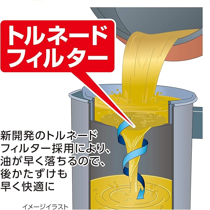 新開発のトルネードフィルターにより油が早く落ちるのであと片付けが快適