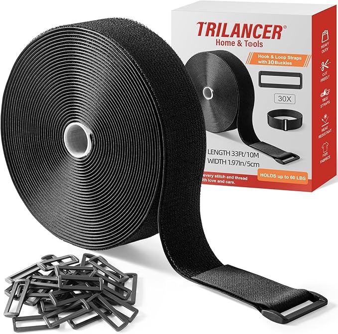 Trilancer 10m x 5cm 強力マジック結束バンド 30個のバックル付き – 調節可能、必要な長さにカット可能、再利用可能なストラップで、ケーブル、ホース、パイプなどをしっかり固定できます