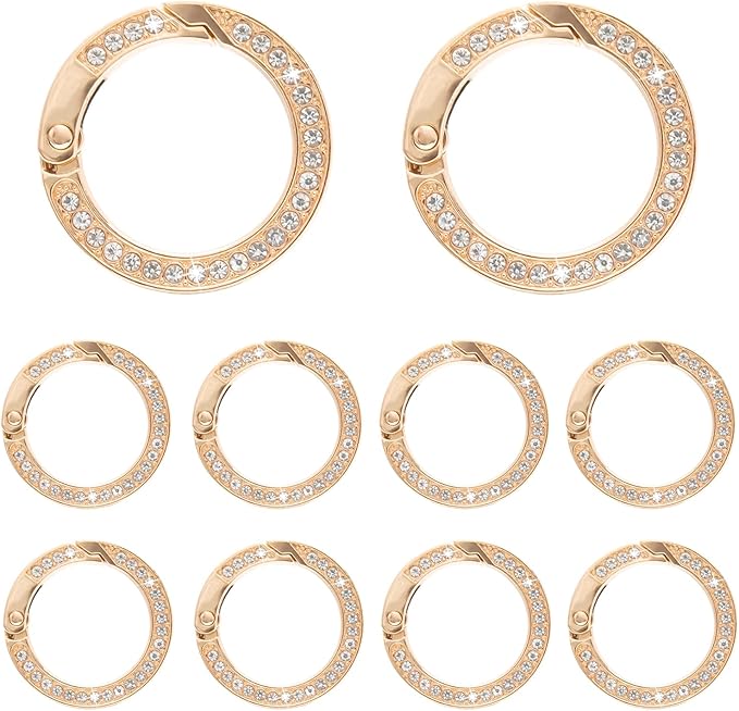 [サムコス] キーリング 10個セット 金色 おしゃれ カラビナ ラインストーン キラキラ 丸型 カバン飾り 鍵飾り バッグチャーム DIY手作りアクセサリー ジュエリー作り デコキット 人気 レディース