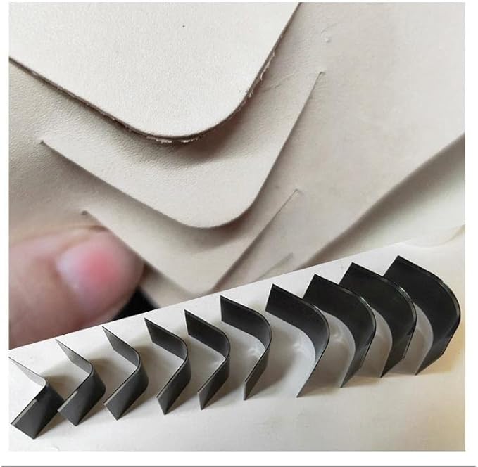 レザークラフト用のエンドパンチ 10種セットです。 ハンドメイドの革製品の角落としにご使用ください。 財布や名刺入れ、スマホケースなどをオリジナルで加工したり、 初心者の方から上級者の方までで幅広くお使いいただけます。 レザーに当てて、ハンマーなどで叩くと綺麗なカーブを作ることが出来ます。 ■商品サイズ (約)高さ23.8mm(約)厚さ0.7mm ■パンチサイズ 3mm/5mm/8mm/10mm/12mm/15mm /18mm/20mm/22mm/25mm