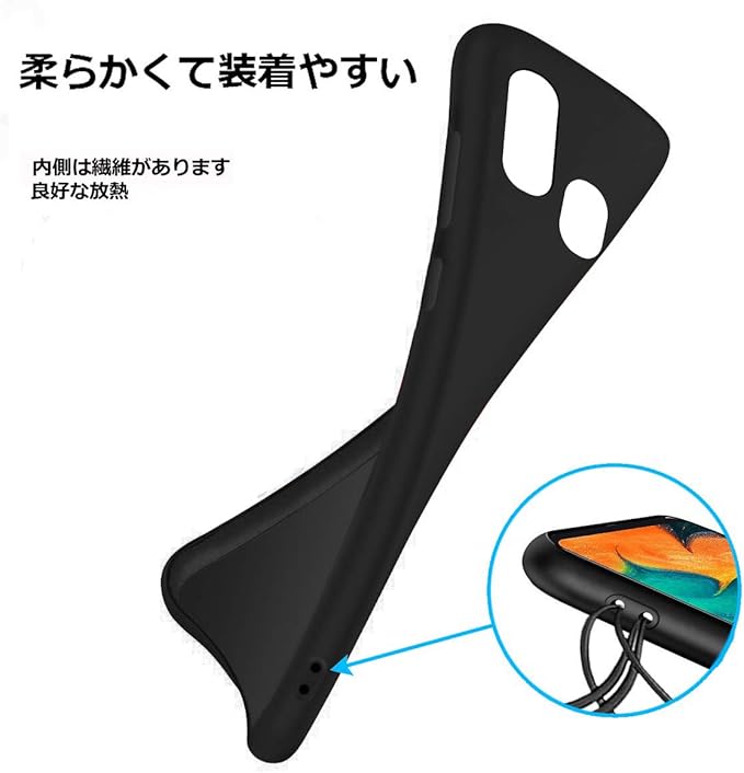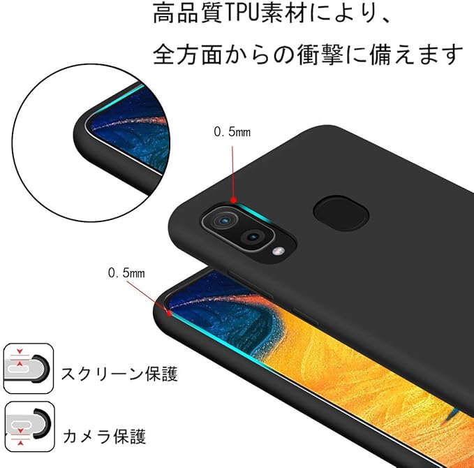 Samsung Galaxy A30 ケース tpu シリコン 耐衝撃 磨り表面 指紋防止 軽量 スリム 薄型 Galaxy A30 SCV43 スマホケース ストラップホール 一体型 人気 携帯カバー ブラック