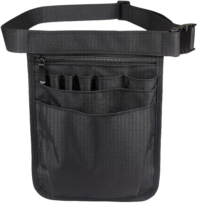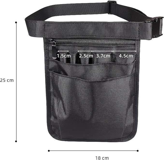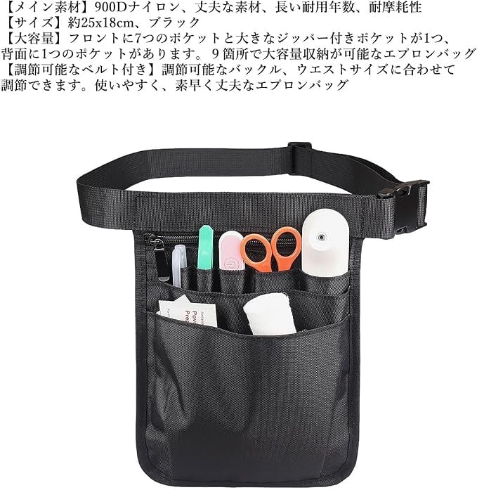 ABE ウエストポーチ 工具袋 保育 仕事用 エプロンバッグ ウエストバッグ ベルト付 多機能ポケット 18cm 25cm 約125g コンパクトで使いやすい 便利 アイテム ブラック