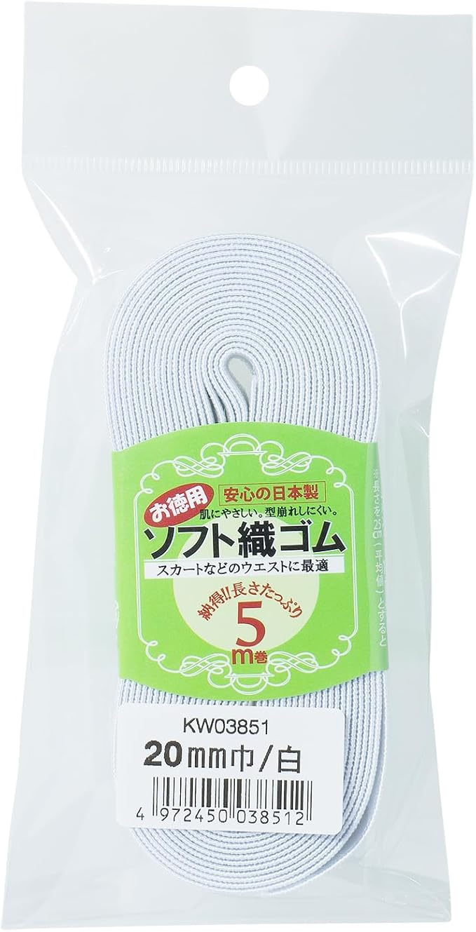 ソフト織ゴム 5m巻 白 (20㎜, 白) ウエストゴム ウエスト 裁縫 裁縫道具 手芸 スラックス スカート パジャマ