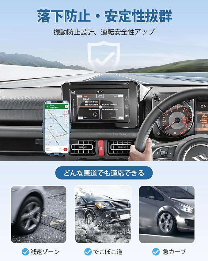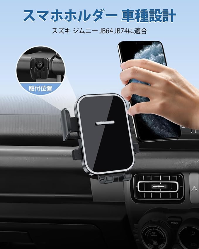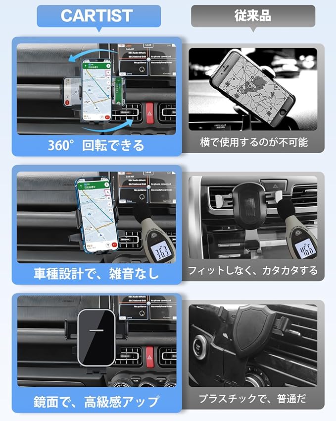 Cartist スズキ ジムニー ノマド JB64 JB74 JC74 専用 スマホ ホルダー JIMNY NOMADE/SIERRA 5ドアに適合 2018~ 携帯 ホルダー スマホスタンド ワンタッチ 鏡面 片手操作 360度回転 車載ホルダー 固定 雑音なし 取付簡単 Bタイプ