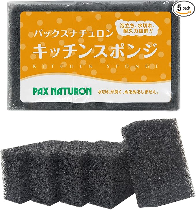 PAX NATURON(パックスナチュロン) キッチンスポンジ ( ブラック / 5個セット ) 台所 食器洗い 皿洗い スポンジ ( 泡立ち / 水切れ / 耐久性 ) 太陽油脂