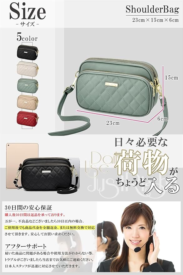 【飽きのこないデザイン】シンプルながら上品なデザイン。使い勝手も良いコンパクトな大人かわいいショルダーバッグです。街中で普段使いはもちろんショッピングやお財布兼サブバックとしても活用できます。