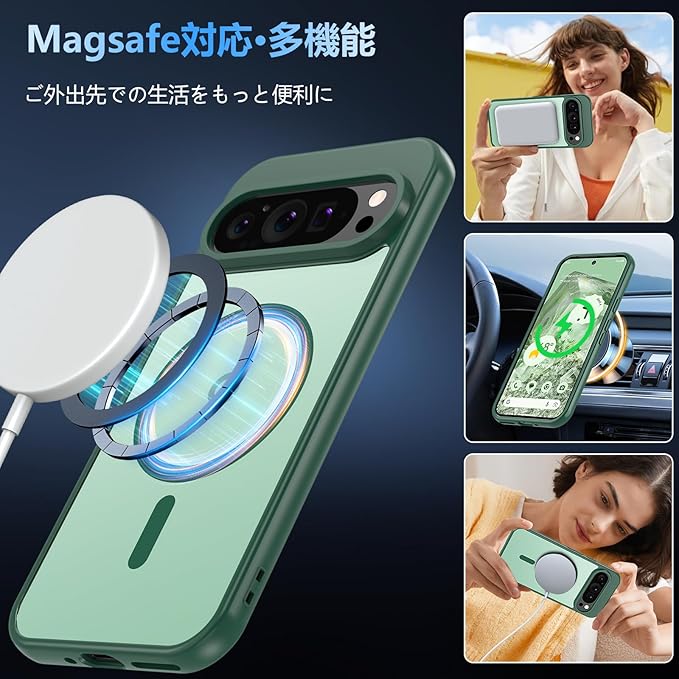 【MagSafe対応&より高速 簡単に充電】ケース内部には2024年に新開発された強力なマグネットが搭載されており、吸着力と安定性が向上し、MagSafe充電対応で差し込みのいらない超簡単・超高速充電を実現しています。また、MagSafe対応アクセサリーもいろいろ!MagSafe充電器、MagSafeバッテリー、MagSafe車載ホルダー、MagSafeリングなどのMagSafeに対応した Pixel9 ケース です。いつでもどこでも使いやすいMagSafeデザインです。