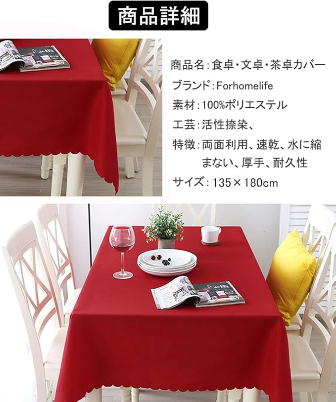 Forhomelife テーブルクロス レッド 無地 クリスマス お正月 シンプル テーブルカバー 長方形 140 140cm 洗える ウォッシャブル 洗濯可 速乾 赤 厚手 耐熱