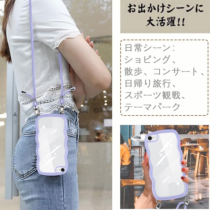 iPhone SE3 SE2 用 ケース ショルダー クリア SE 第3世代 第2世代 iPhone8 iPhone7 カバー スマホケース 透明 TPU ストラップ付き 肩掛け 首掛け 紐付き 斜めがけ 創意 個性 可愛い かわいい 韓国 耐衝撃 アイフォンSE3/SE2/8/7(クローブ 紫)