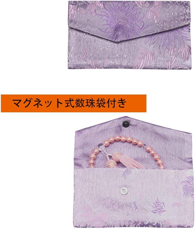 高級なマグネット式数珠袋も付属しており、保管や携帯に便利です。お娘さんや奥さんへのプレゼントに最適!