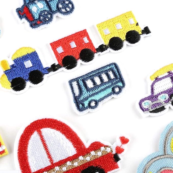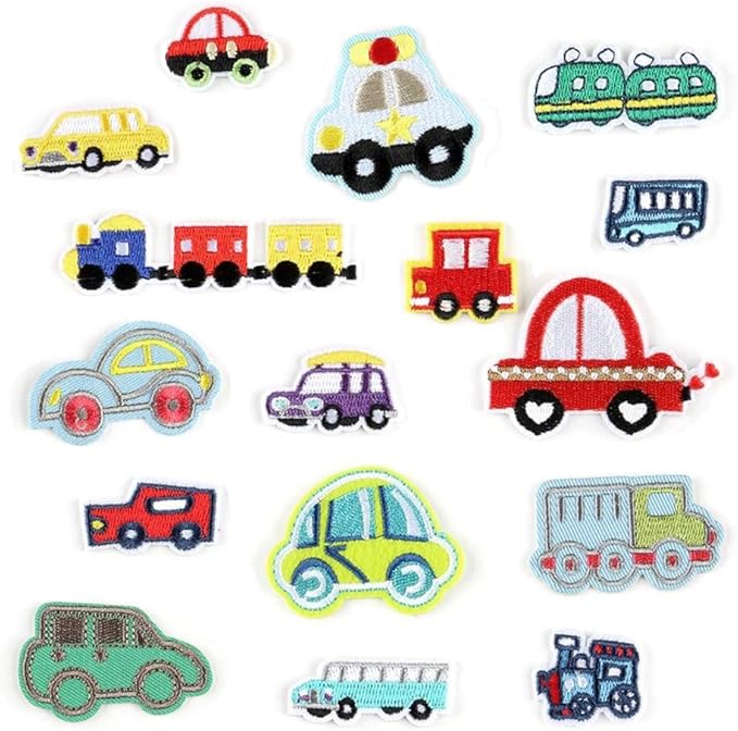 ワッペン 16枚セット 車 乗り物 アイロン接着 刺繍ワッペン アップリケ パッチ 補修 可愛い 子供 男の子 幼稚園 保育園 DIY お祝い ギフト