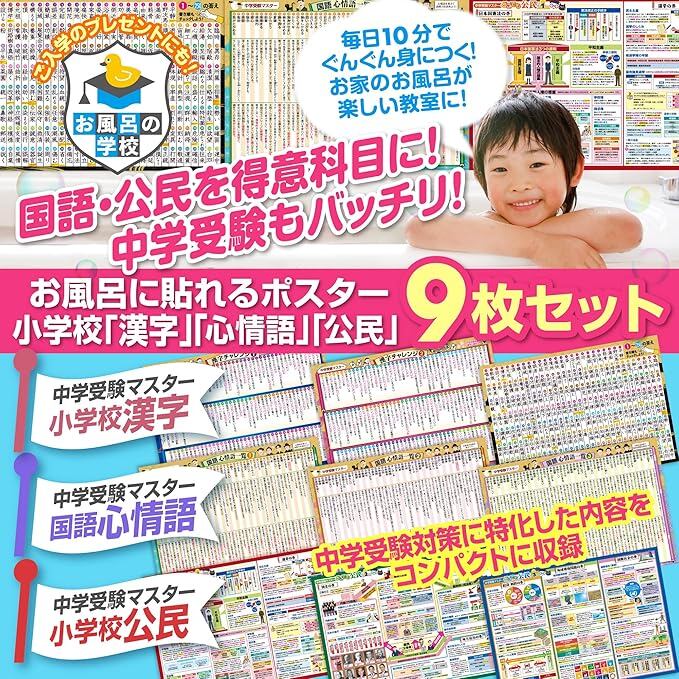 お風呂の学校 セット価格 中学受験マスター漢字/心情語 お風呂ポスター2種類セット 日本製 国語 学習 知育 B3サイズ 防水
