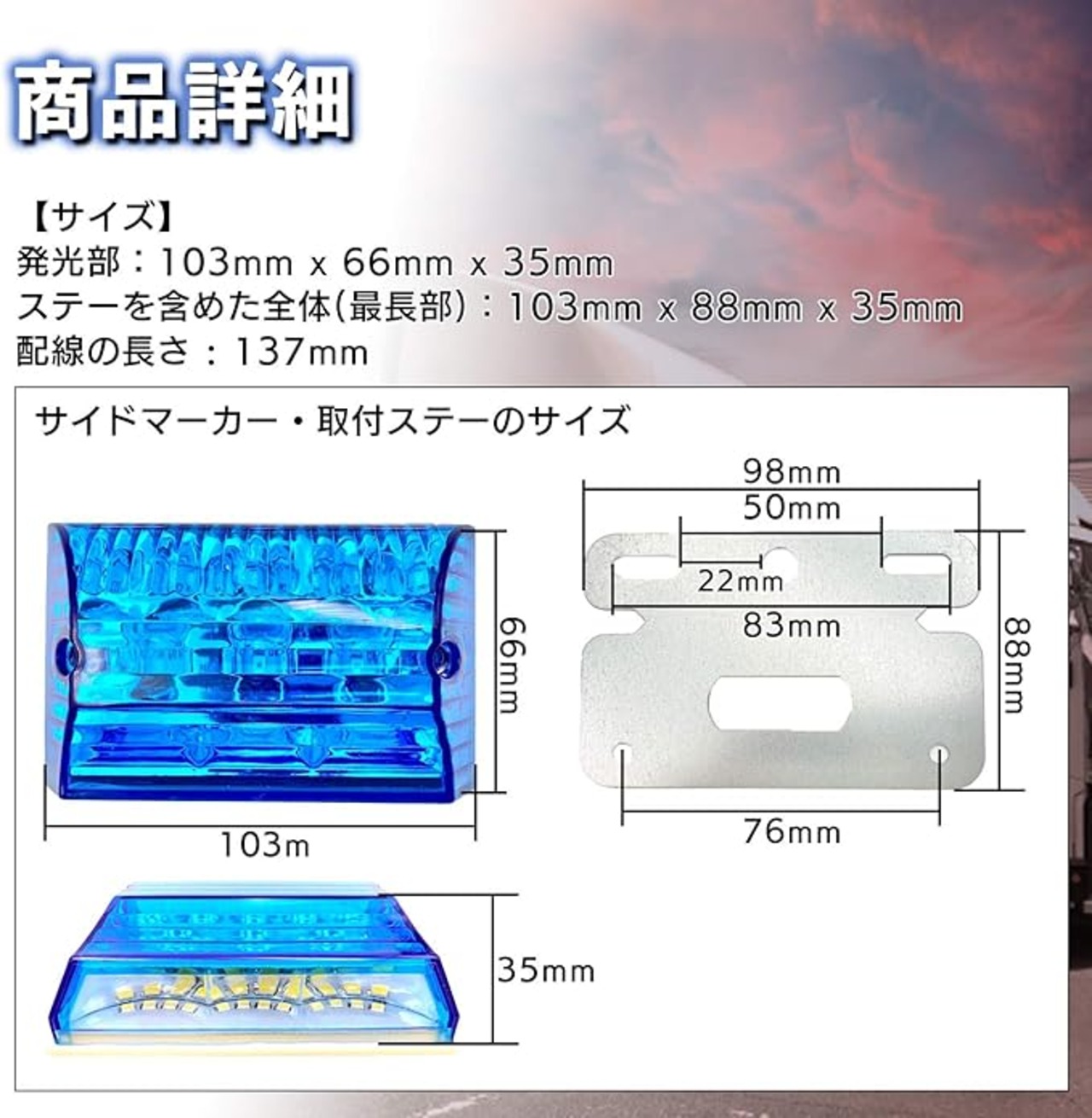 Meliore LED サイドマーカー 24V トラック デコトラ ダウン アンダー ライト デイライト ランプ 路肩灯 防水 カスタム ドレスアップ パーツ 大型車 汎用 社外 品 青 ブルー 10個